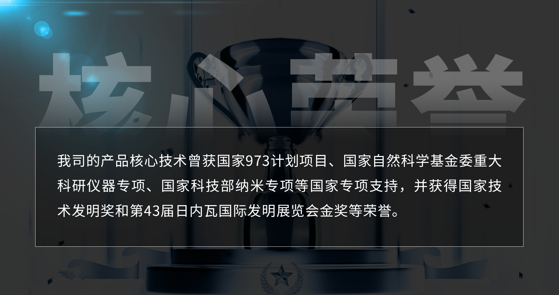 我司的產(chǎn)品核心技術(shù)曾獲國家973計劃項目、國家自然科學(xué)基金委重大科研儀器專項、國家科技部納米專項等國家專項支持,并獲得國家技術(shù)發(fā)明獎和第43屆日內(nèi)瓦國際發(fā)明展覽會金獎等榮譽(yù)。