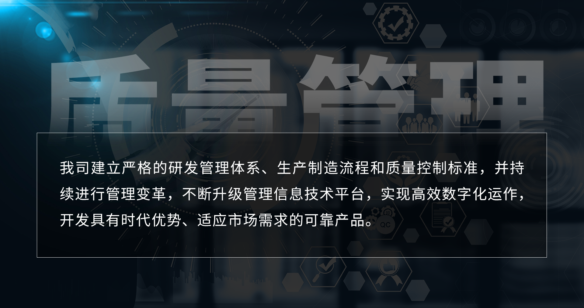 我司建立嚴(yán)格的研發(fā)管理體系、生產(chǎn)制造流程和質(zhì)量控制標(biāo)準(zhǔn),并持續(xù)進(jìn)行管理變革,不斷升級管理信息技術(shù)平臺,實現(xiàn)高效數(shù)字化運(yùn)作,開發(fā)具有時代優(yōu)勢、適應(yīng)市場需求的可靠產(chǎn)品。