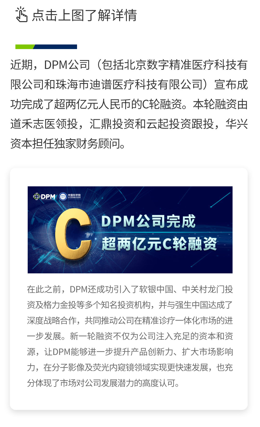 分子影像與熒光內(nèi)窺鏡領(lǐng)導(dǎo)者DPM公司完成超兩億元C輪融資