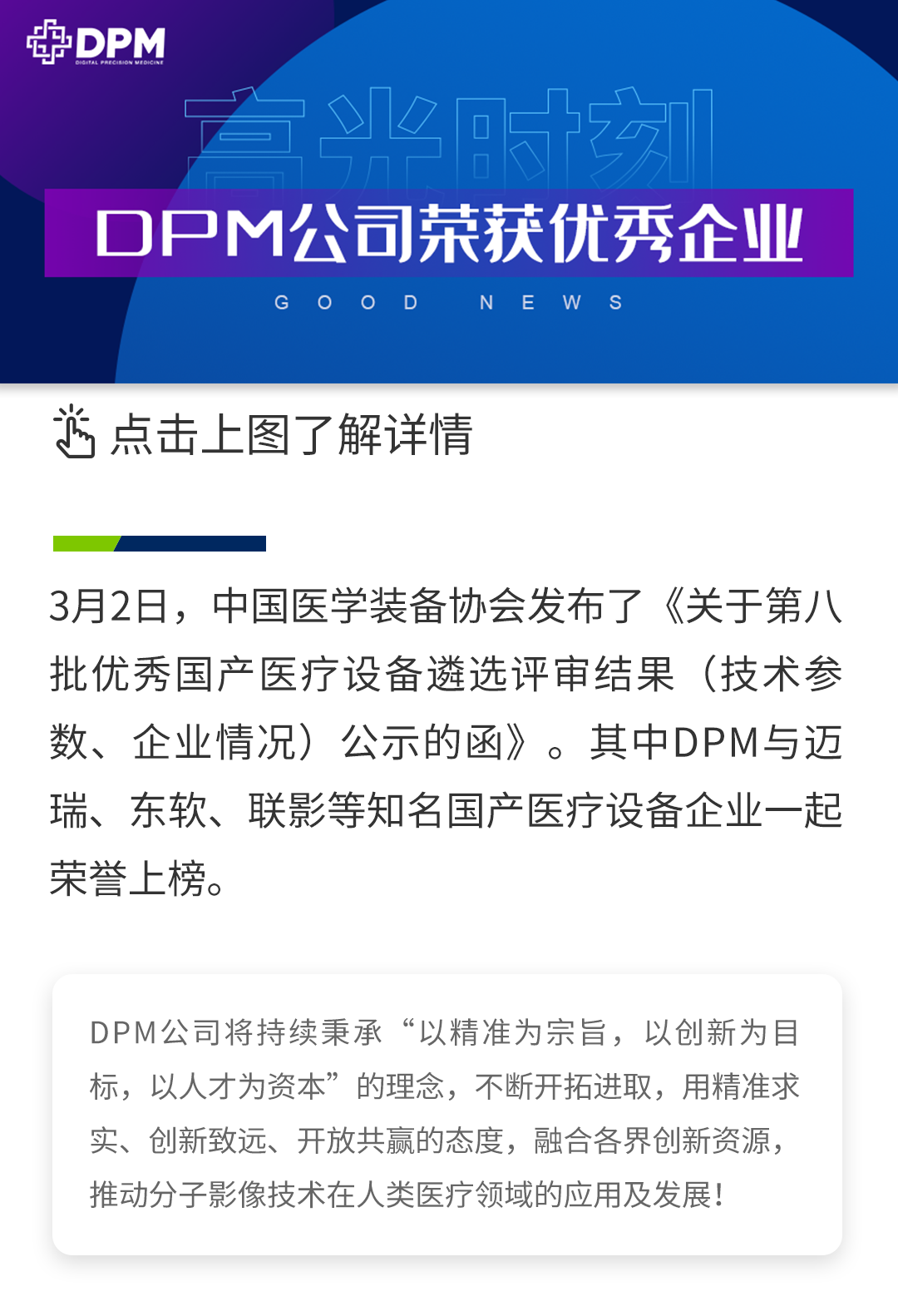 高光時(shí)刻 I DPM公司榮獲2022年度第八批優(yōu)秀國(guó)產(chǎn)醫(yī)療設(shè)備企業(yè)